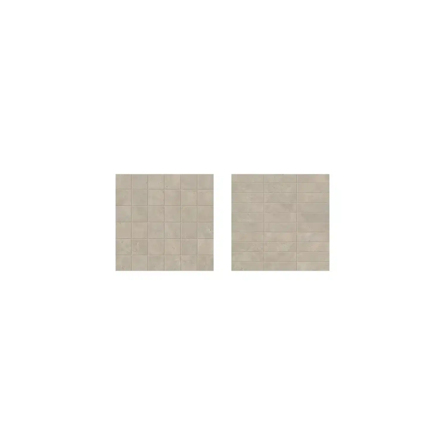 1 1/8"x3 7/8" Muretto Mosaic (12"x12" Mesh Mount), 2"x2" Block Mosaic (12"x12" Mesh Mount)